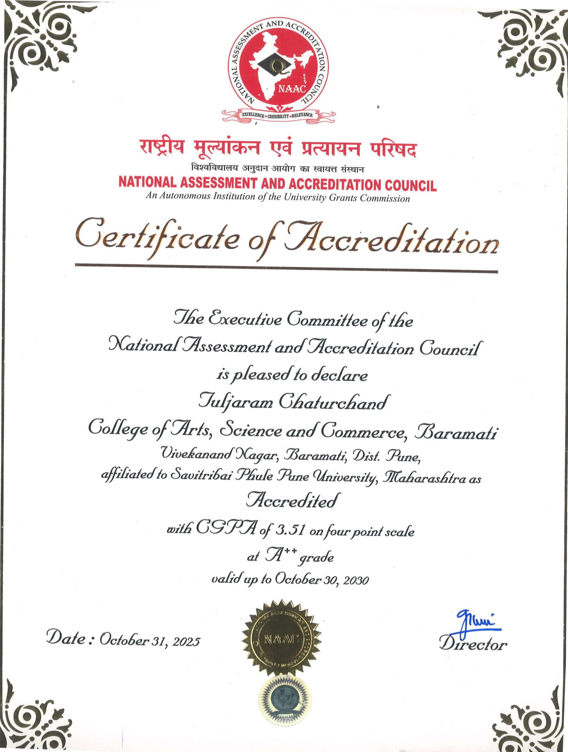 | 7 | NAAC 1st Cycle Certificate | Download |